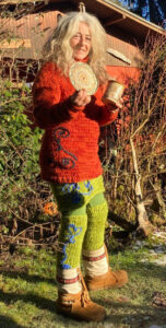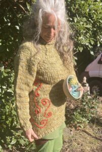 Größe S-M, Merino handgesponnen und gefärbt 270,-