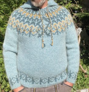 Zur Preisfindung: die Pullover im Island-Stil benötigen je nach Größe ca. 30-40 h Arbeit, dazu kommt ca. 1kg Island-wolle.